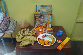 Yesterday was the thirteenth day after Manu’s demise. This is the day of the final send off, according to Hindu rites. I presume his family must have done the needful, but his project why family did it their way. A little table was set in a corner of the special section with his photograph, flowers, incense, bananas, his favourite food and of course a packet of biscuits Manu’s peche mignon! An oil lamp was then lit and would remain lit for the entire day. His classmates and three roomies sat in silence in front of his smiling picture. When all was ready, we observed a minute of silence. The room was filled with wondrous energies and we all felt Manu was with us.