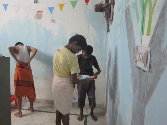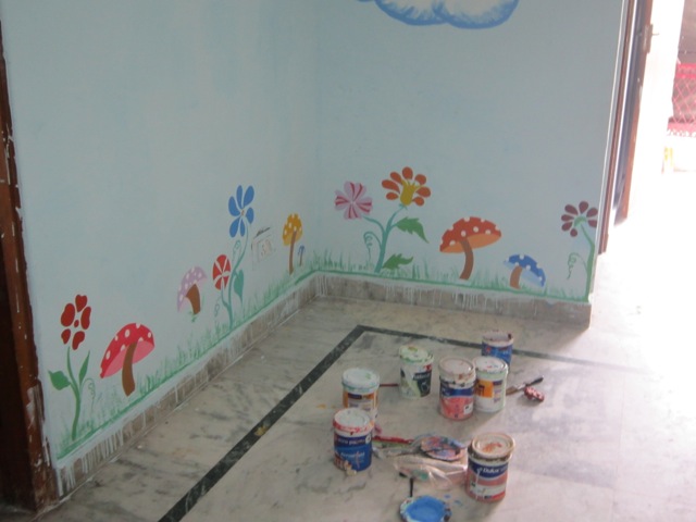 Who said they could not do it. I am talking about my very special kids and their exceptional teachers. This is how the story goes: Shamika the leader of the crew came to me one morning asking for 2000 rupees to paint her class. Need to be noted that her class is a three room flat! I told her I would tell our administrator to get the painting done as soon as we had some extra funds. She can be very stubborn and more so because I am not just Ma’am but also Mom. She told me she and her kids were capable of painting the class and anyway they also wanted to decorate it so no painter would do. I know my Shamika, when she gets in this kind of mode, then even God would not be able to change her mind. I meekly gave her the money.