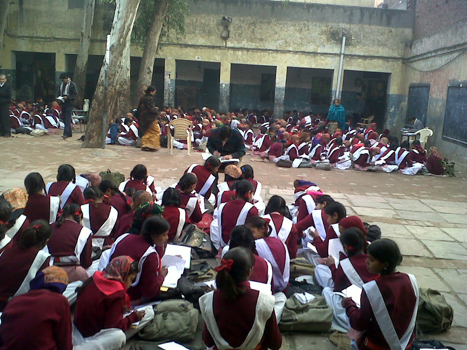 I received an email from a lawyer activist who has been relentlessly advocating for better schools in our capital city. He recently visited a school in outer Delhi and “found that hundreds of girl students sitting in ground and on the school roof in open in bitter cold weather. Those found sitting in the classrooms were taking exams in total dark rooms without even electric connections, I am told by the teachers that nearly 1200 girl students are studying in the morning shift and the equal number of boy students are studying in after noon shift. The school appears to be running in a dangerous building for the last three years.” This is totally unacceptable by all standards. What is the use of a right to education if it is not guaranteed by the State. Why should children be studying in the bitter cold or scorching sun or giving examinations in pitch dark rooms. This school has 2400 children who are been denied their right to equitable education.