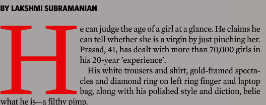Anyone who has a modicum of decency, a grain of compassion and a tiny bit of heart should hang her/his head in shame on the eve of our 65th celebration of our Constitution. A magazine that has hit the stands today and is not yet fully on line though you can read parts of it at this link, chose to place some very disturbing figures on its cover along the title: India’s lost children. 38% of our children are forced into sex trade, 23% are forced into domestic servitude, 4% routed to work at hotels and hospitals, 3% shackled at sweetmeat and garment units. Please buy a copy of The Week and read on if you have the guts to do so. An article on how child traders chose their victims made me physically sick. Here is a screenshot of the beginning of the article so that you understand